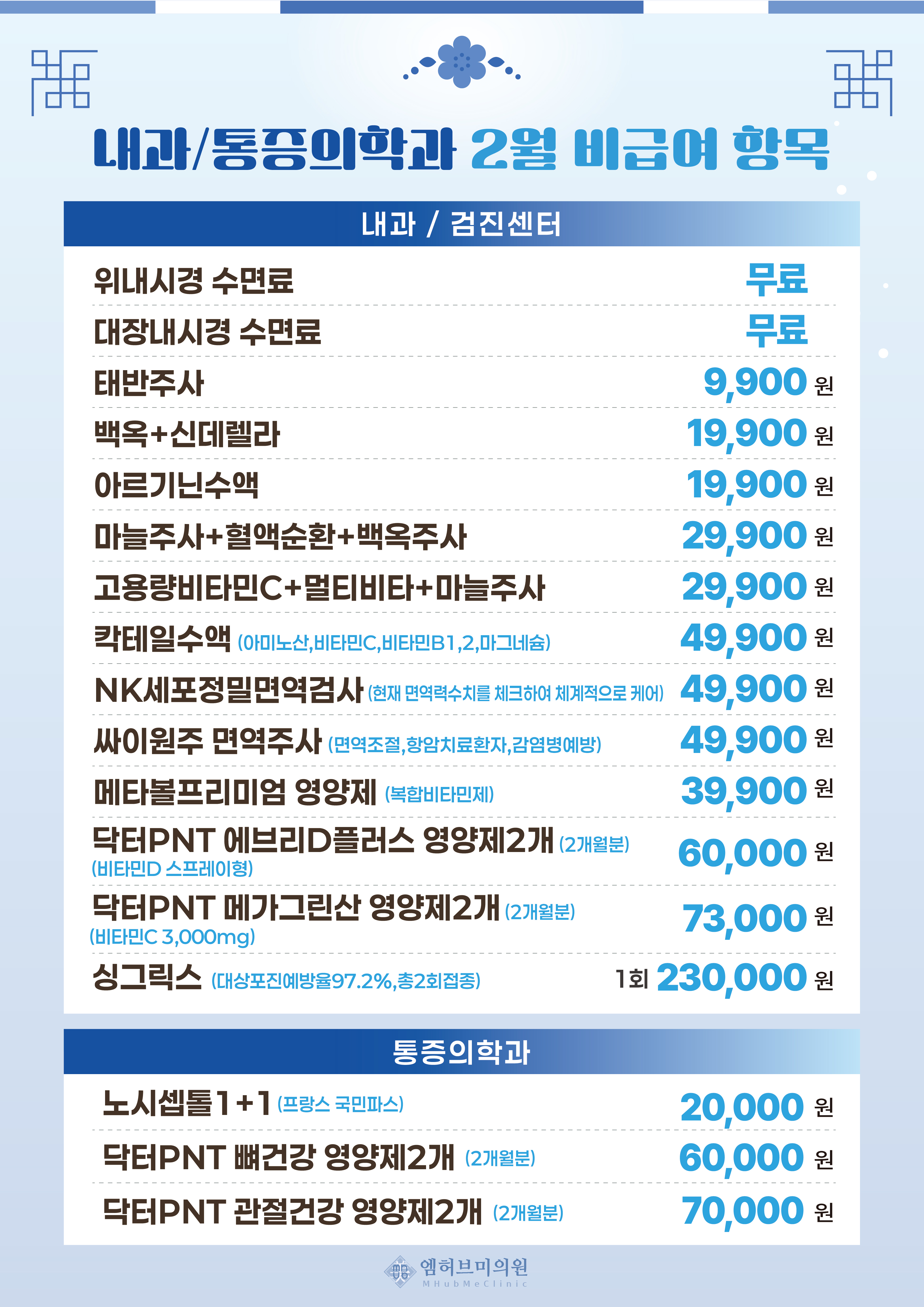 내과 · 건강검진 (내선1) | 피부 · 성형외과 (내선2) | 정형외과 · 통증의학과 (내선3)